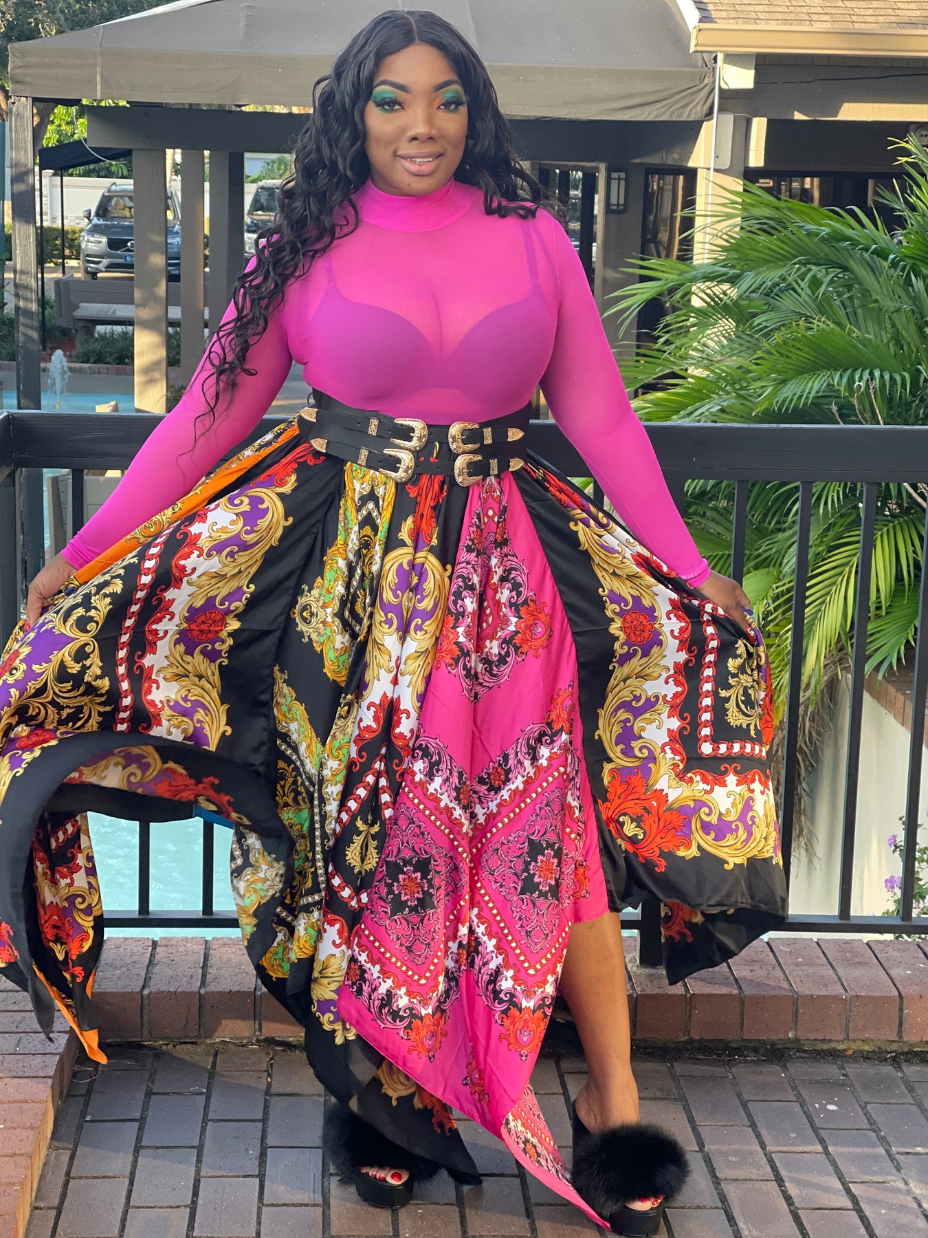 tribal maxi skirt -handkerchief fabric