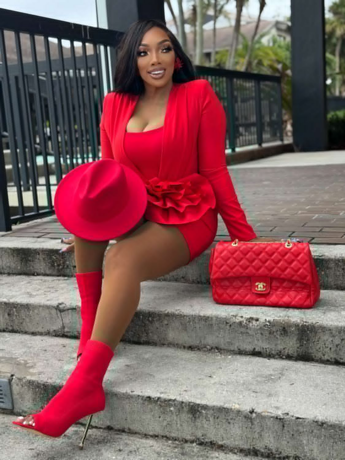 Cut Out Flowered Mini Dress. This little dress features a flowered -stretch polyester exterior, an unlined construction, edgy SOLID, STRETCH WOVEN FABRIC - LOW PLUNGE V-NECK - LONG SLEEVES and a mini length silhouette. Complete with ac back zip closure. Pair with soft boots and tonal bodysuit shapewear for alayered covering giving it a classier full effect. or wear without bodysuit for a sexier look