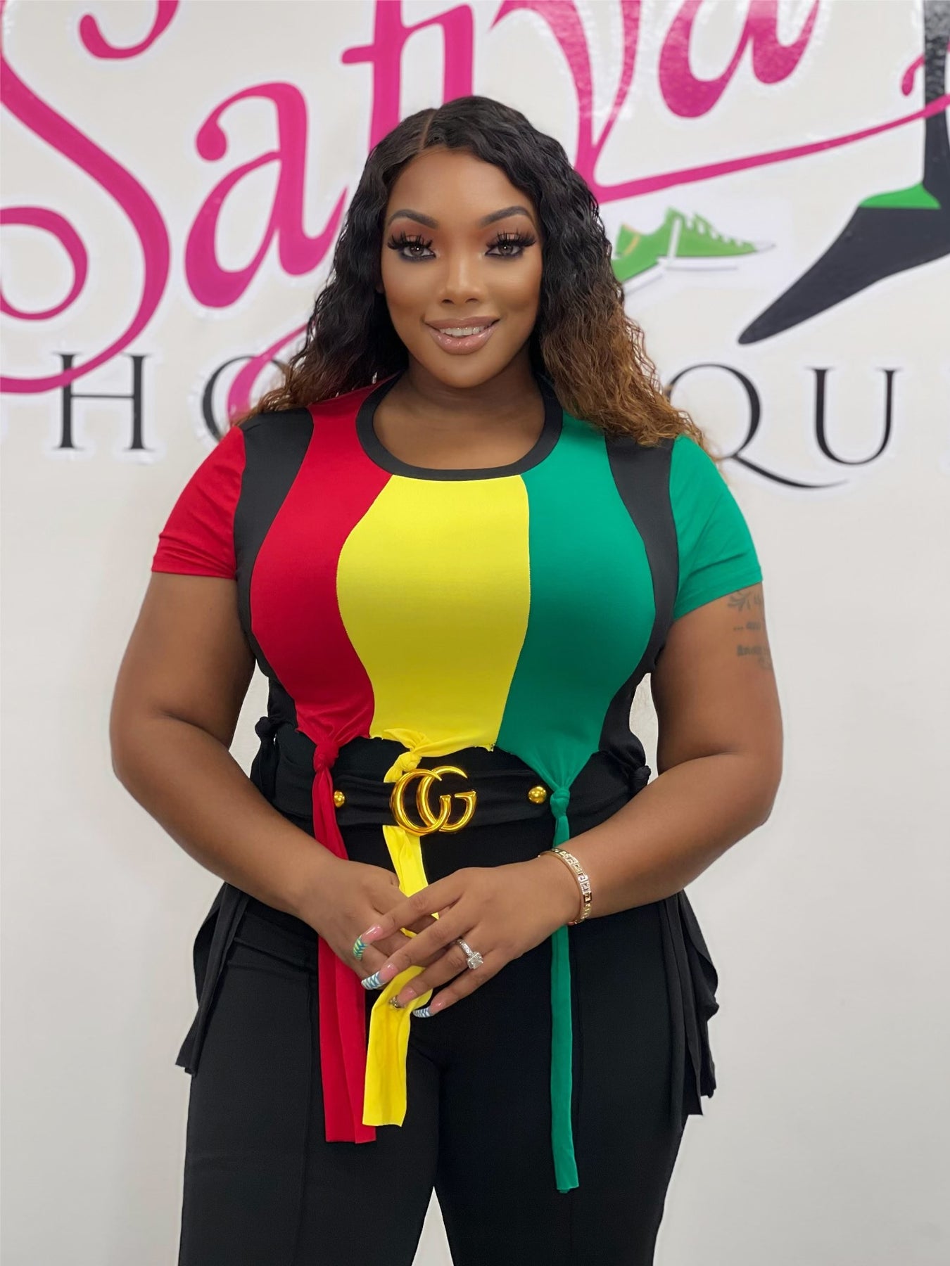 Speak your mind with OUR Straight To JAM DUNG shirt! This elevated athleisure piece is made from a soft fabrication and features A Round Neck SNUG FIT WITH Color Block Stripes Fringe Bottom Ties Short Sleeve Crop Top- Model is wearing size LARGE