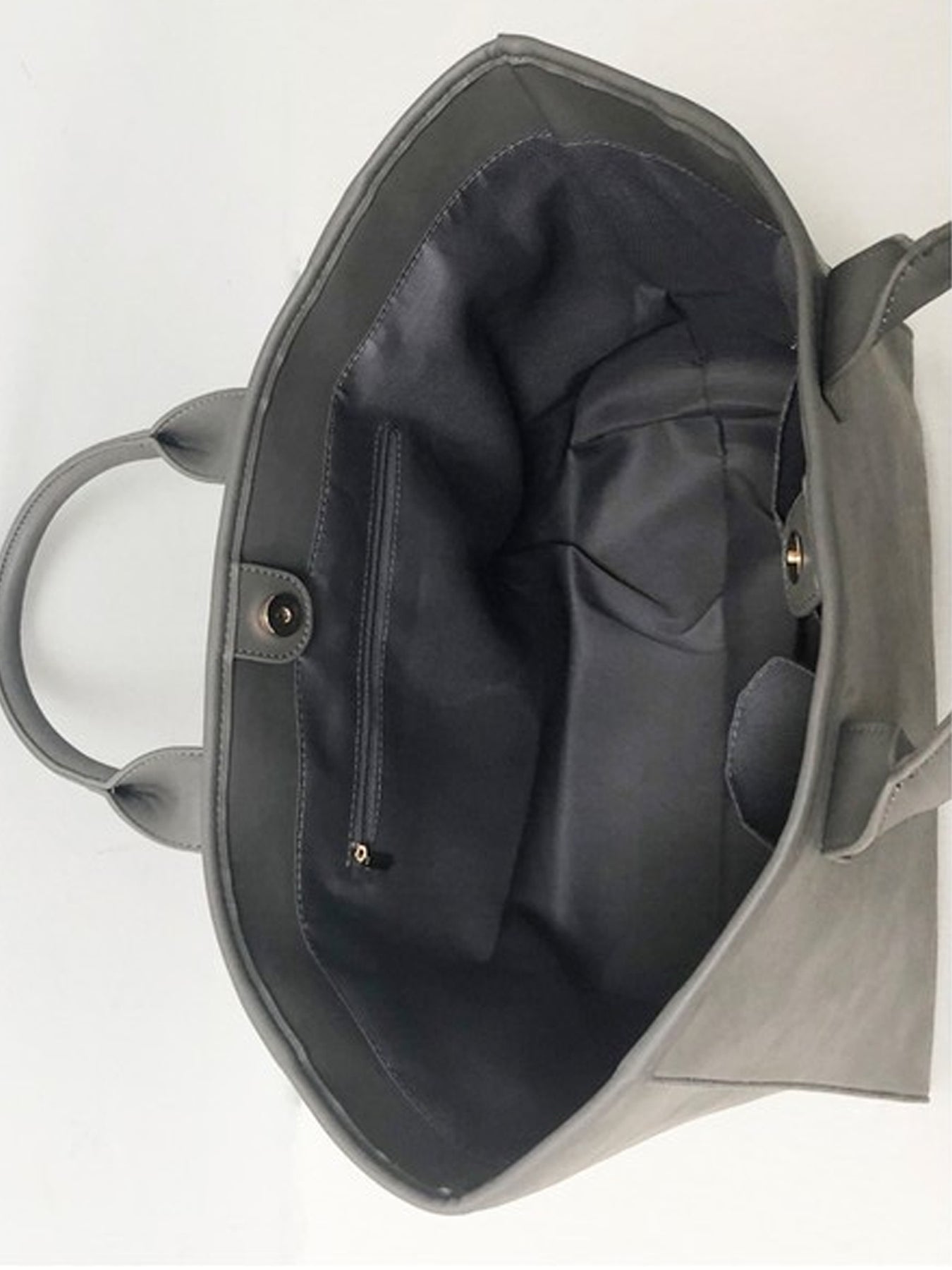 Snap closure. One interior zipper compartment and two interior storage pockets