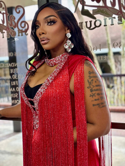 Fireside Glamour: Red & Gold Tropical Flower Earrings
