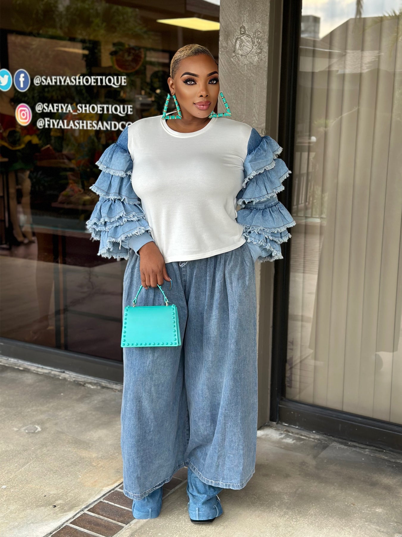 Denim ruffle sleeves
