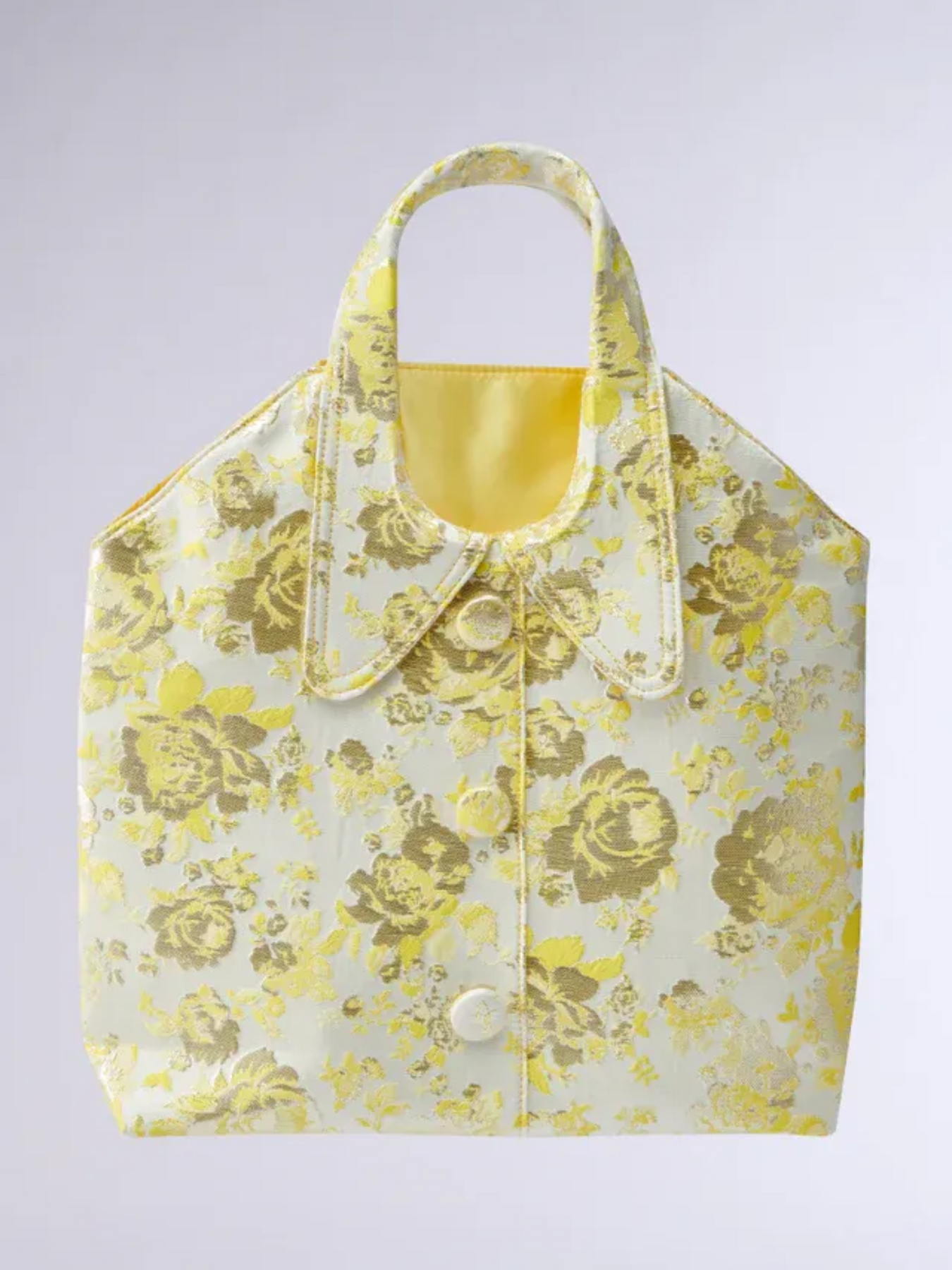Claressa structured handbag features dual top handles with a magnetic snap closure and mock shirt detailing on the front, including collar and button detailing. Complete with a satin inner lining, and an oversized silhouette. Perfect for spring outings, casual events, or elevating your day-to-day wardrobe with a vintage-inspired flair.