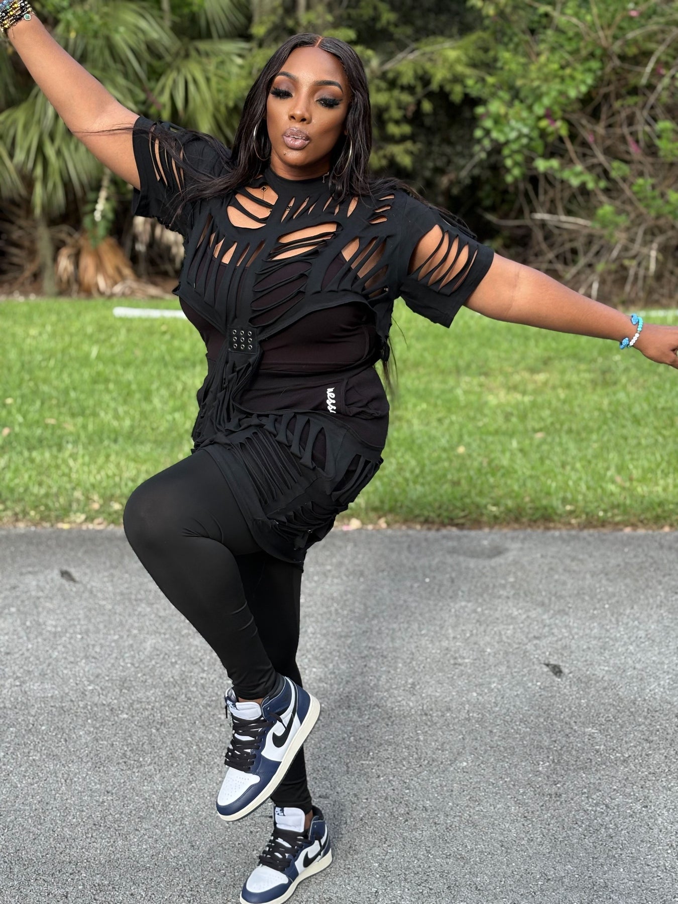 Turn heads in our GRACEFierce Cutout Statement Top, a bold black design featuring edgy laser-cut details that layer effortlessly over your favorite leggings, shorts, or jeans. With its unique pattern and belted waist accent, this top combines streetwear energy with chic sophistication—perfect for a night out, a stylish brunch, or making a fashion statement anywhere you go.